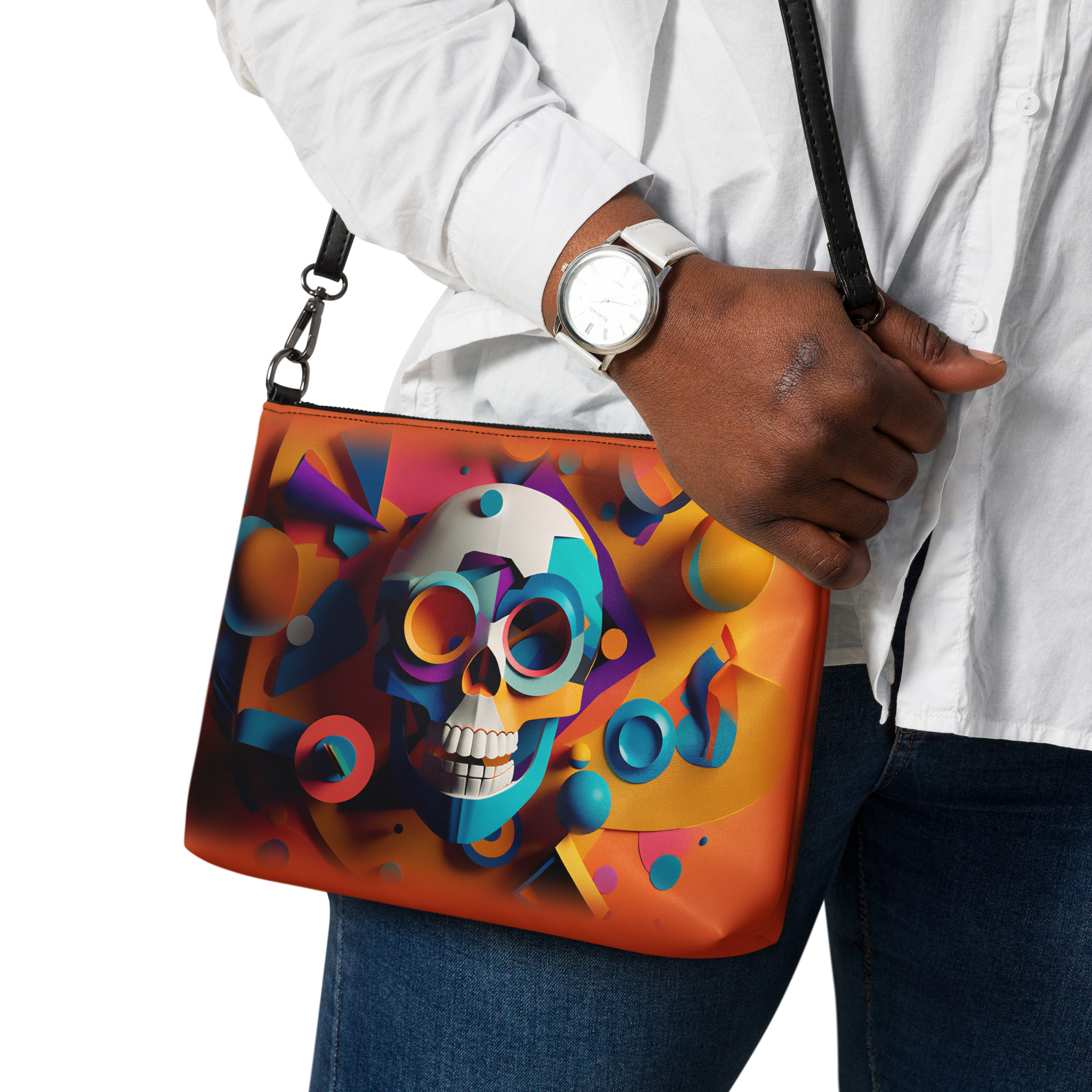 Bold and iconic, skulls go with everything! That's why you have one, so now have two! Get this original art piece in bag form from the StreamCatcher! Keep your style on point and your hands free with our versatile crossbody bag. It’s made of premium faux leather and features dark gray hardware. Thanks to the zip-top closure and multiple inside pockets, you can keep your essentials secure and organized. Transform this crossbody bag with removable wrist and shoulder straps to style it for day-to-night looks.