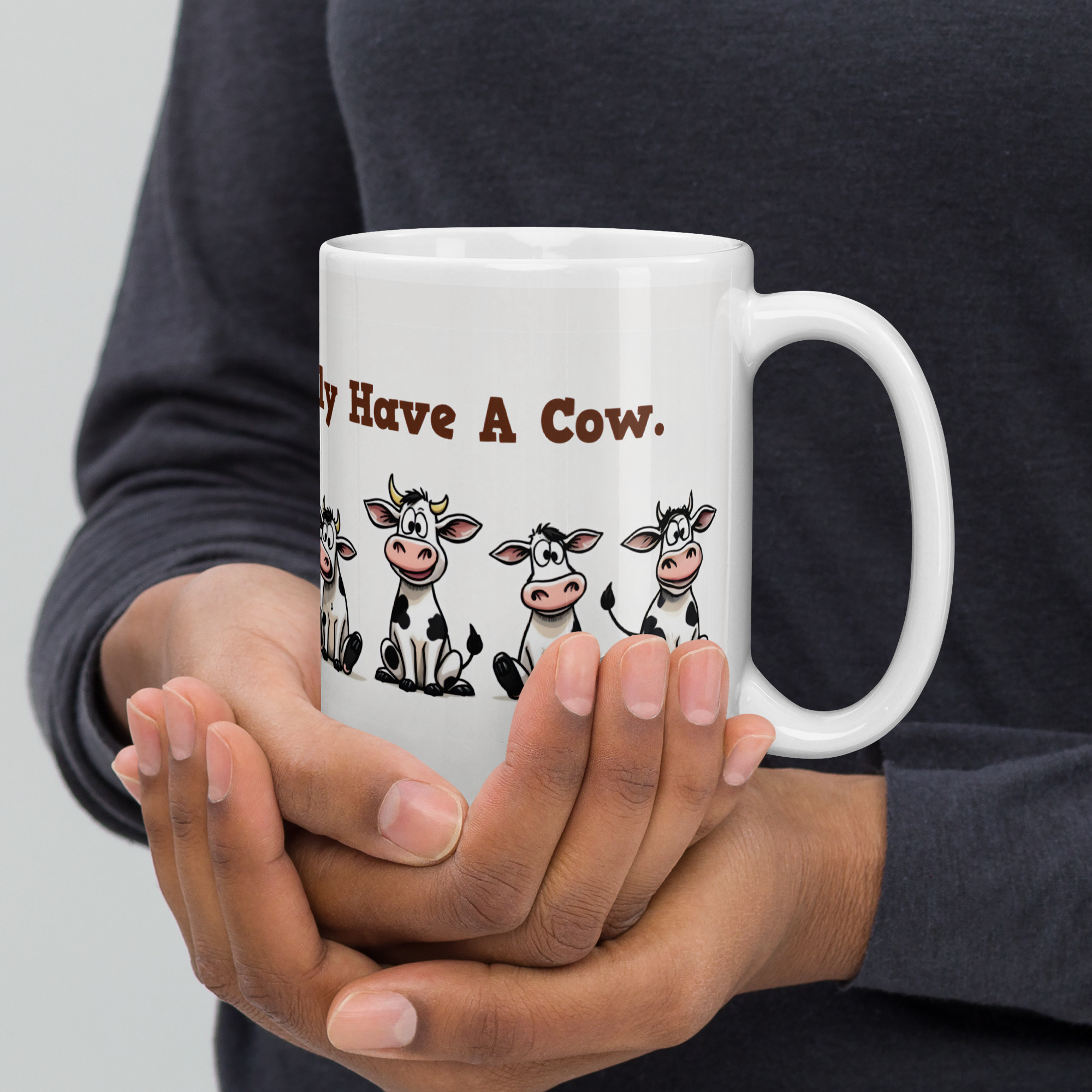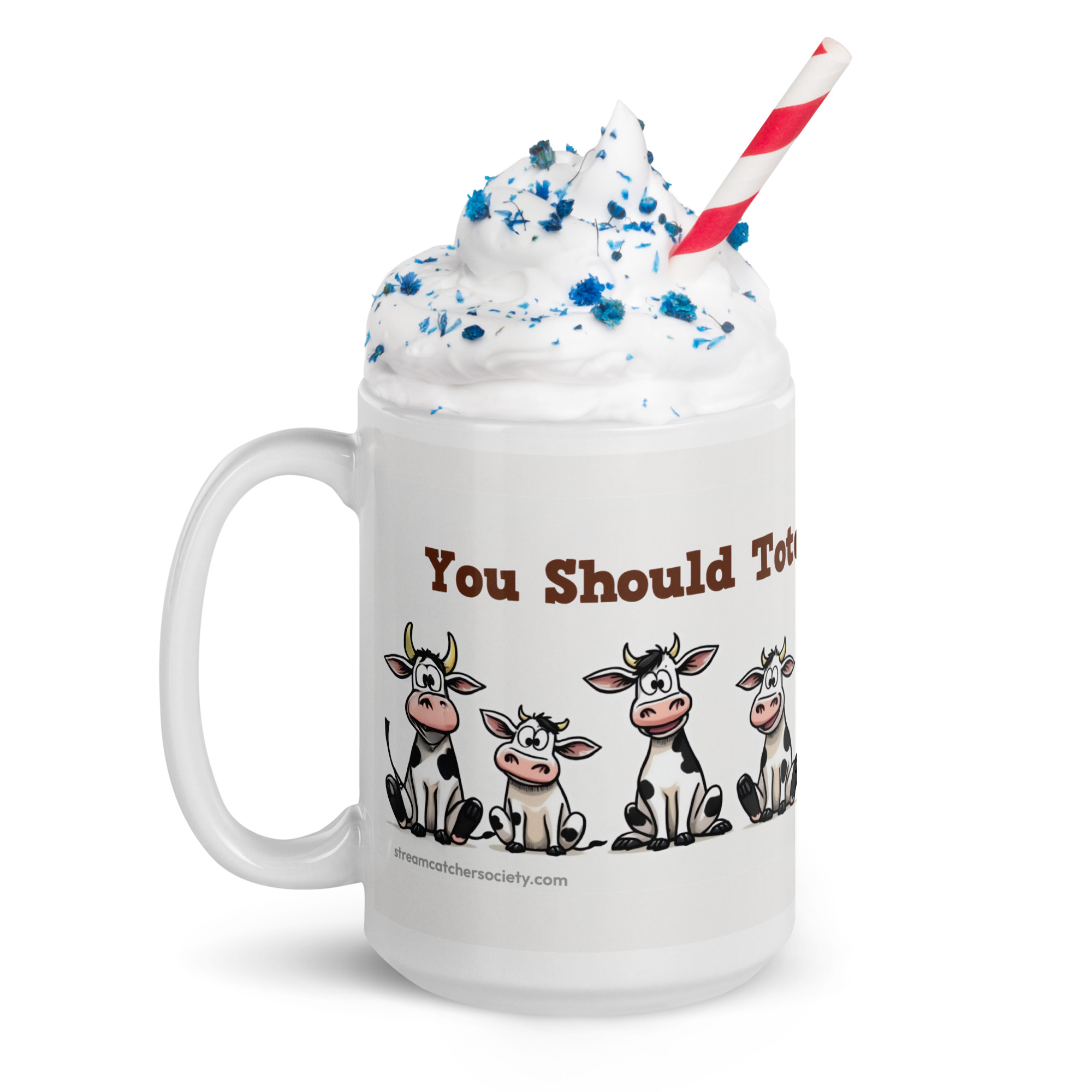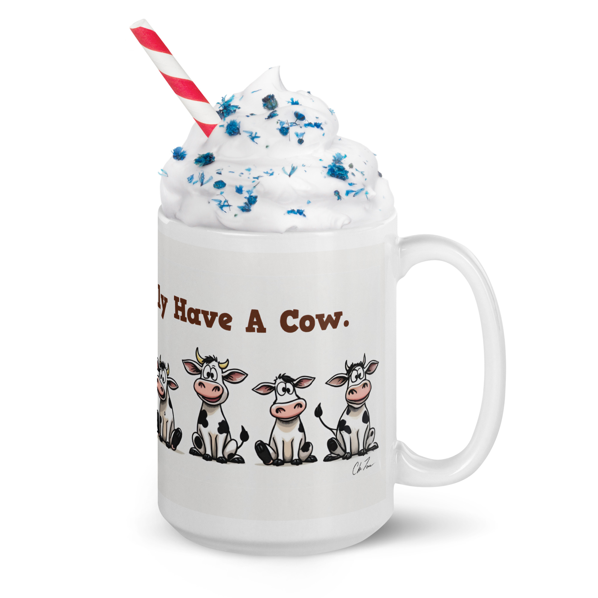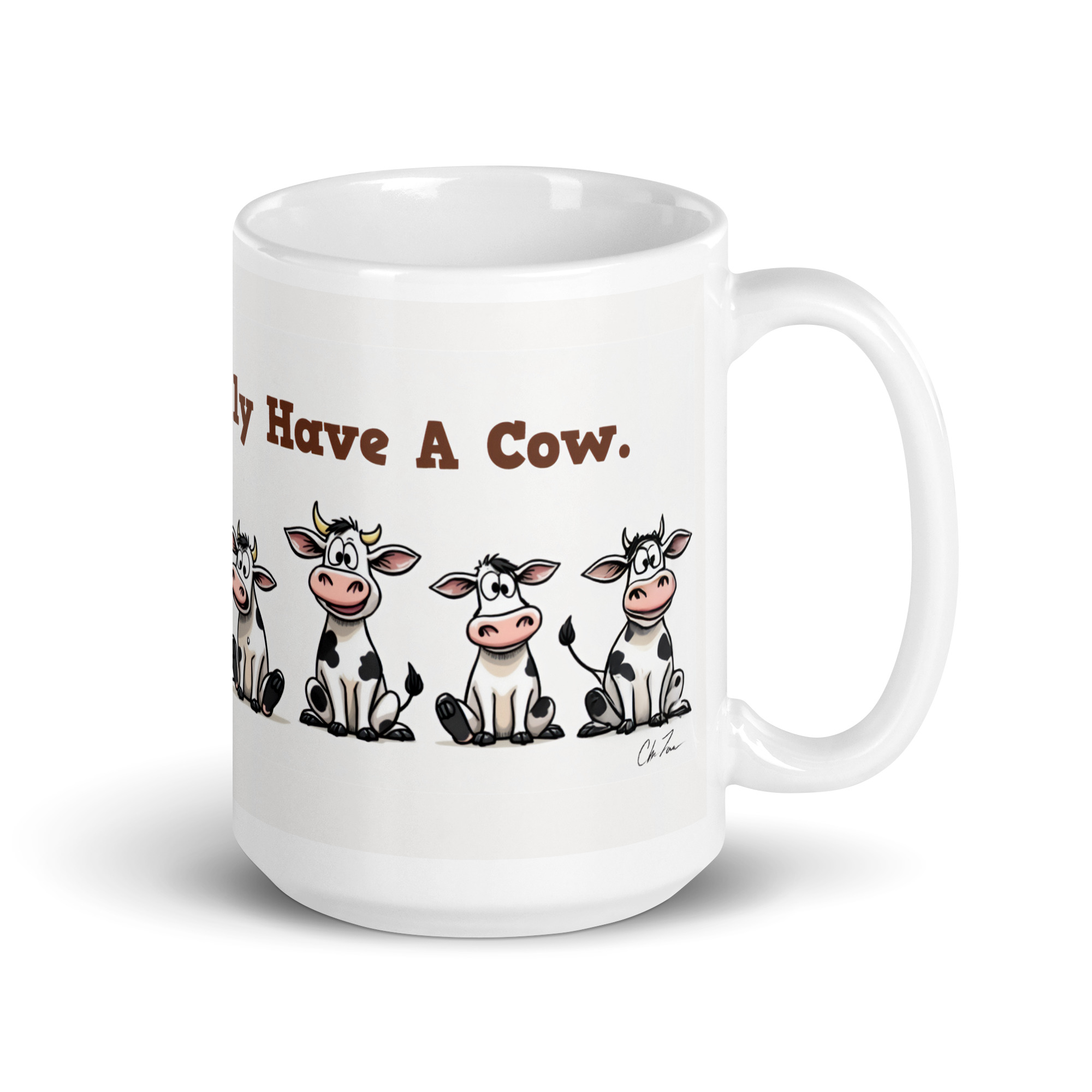 You should totally have a cow, and you will with this custom cartoon art mug from StreamCatcher! Whether you're drinking your morning coffee, evening tea, or something in between—this mug's for you! It's sturdy and glossy with a vivid print that'll withstand the microwave and dishwasher.