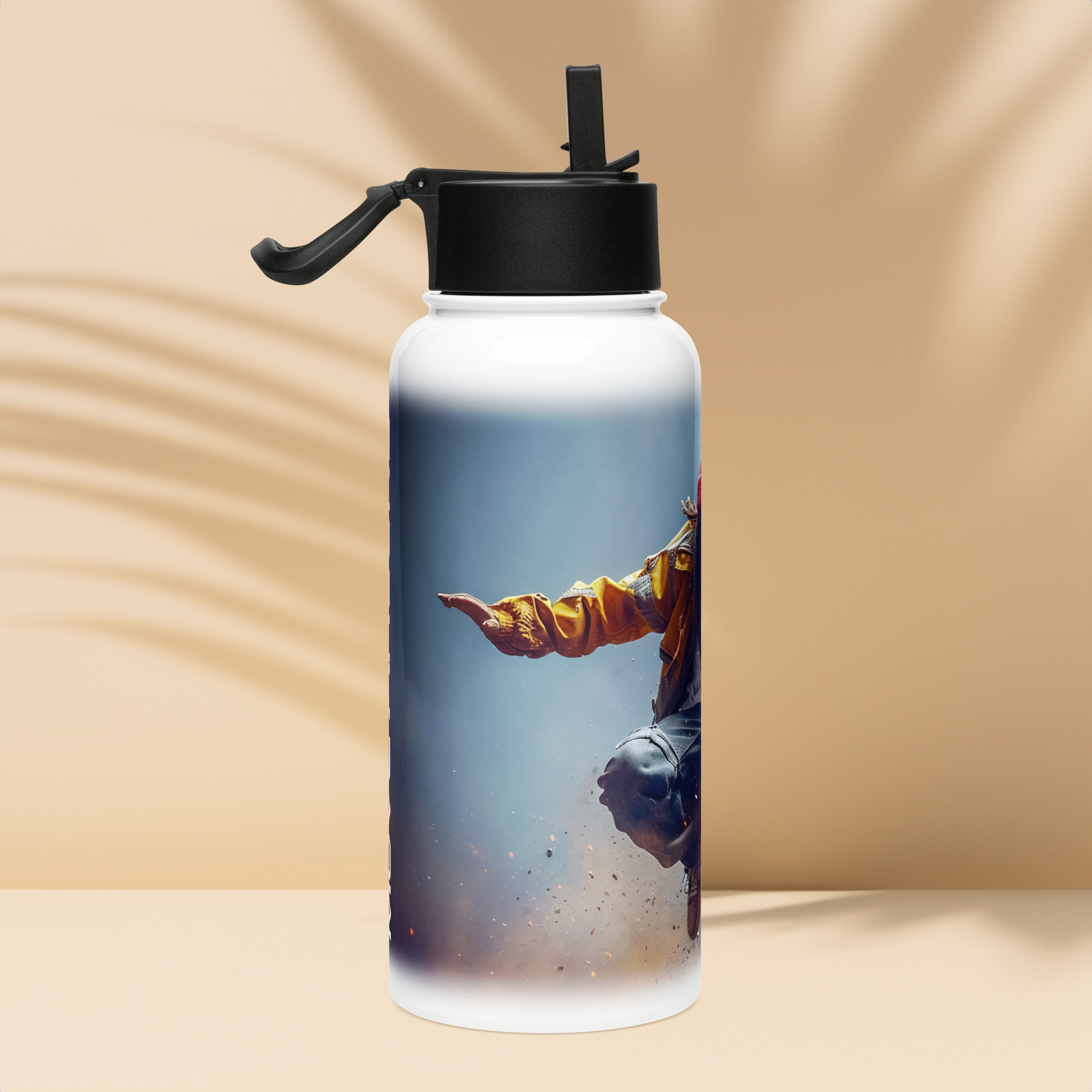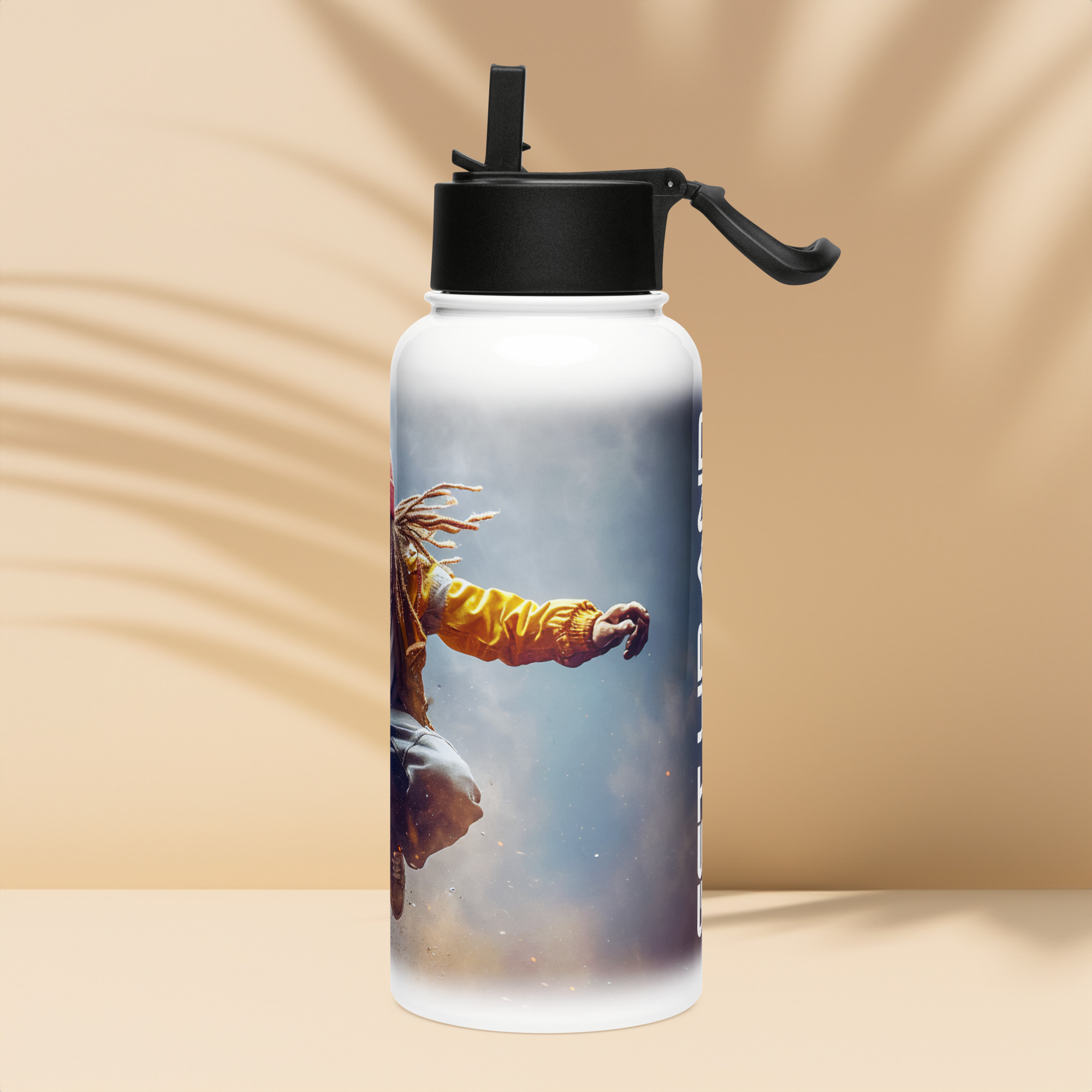 Get inspired for an engergetic and hydrated day with this custom art bottle by the StreamCatcher! Stay hydrated all day with this 32 oz (950 ml) water bottle. It’s ideal for workouts or busy days, with a wide-mouth foldable straw for spill-free sipping and a rotating handle for easy carrying.